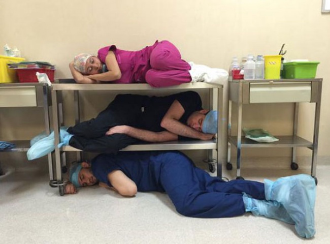 ▼醫護人員的工作時間很容易因為突發狀況而延長,盡責的他們都是完成自己的工作後才休息,很多時候根本沒有回家休息的機會,只好在醫院裡短暫休眠。