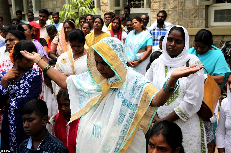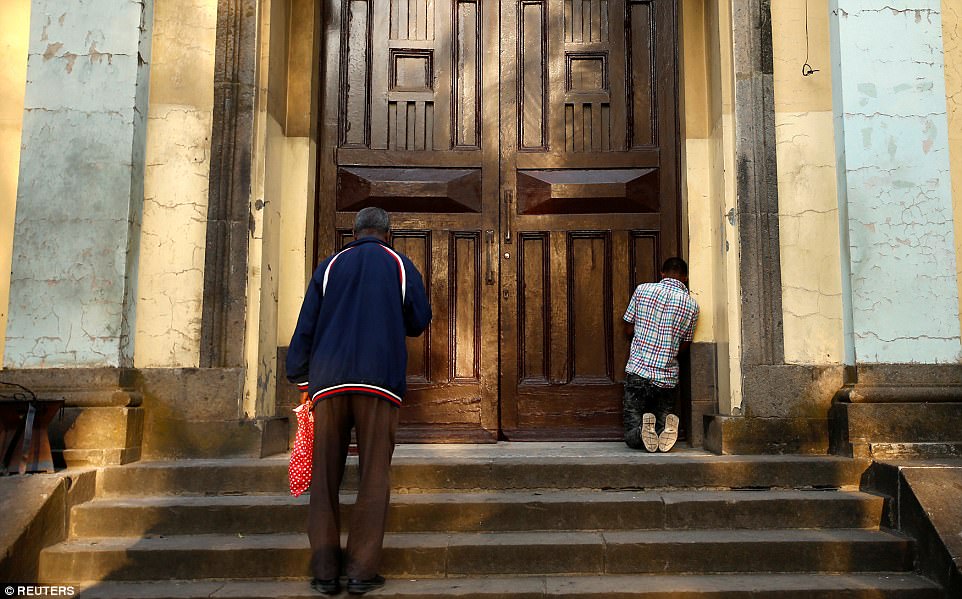 ▼​那些沒來得及進入教堂的人就在門口的台階上表達敬意。