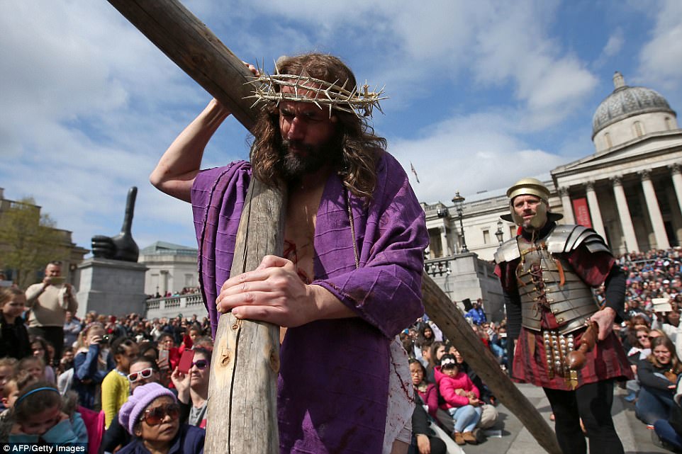 ▼​演員James Burke-Dunsmore在廣場上扮演耶穌。