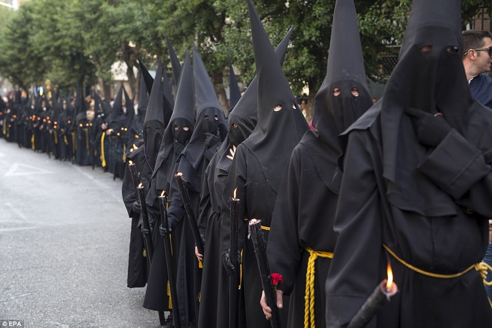 ▼​遊行的拿撒勒派(Nazarenos)戴著尖帽,很有特色。
