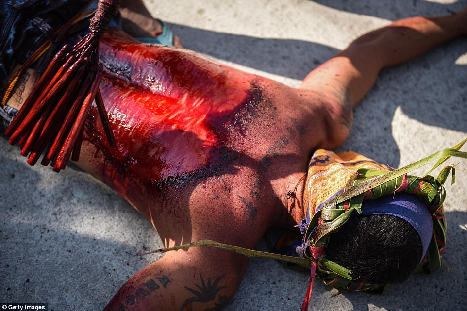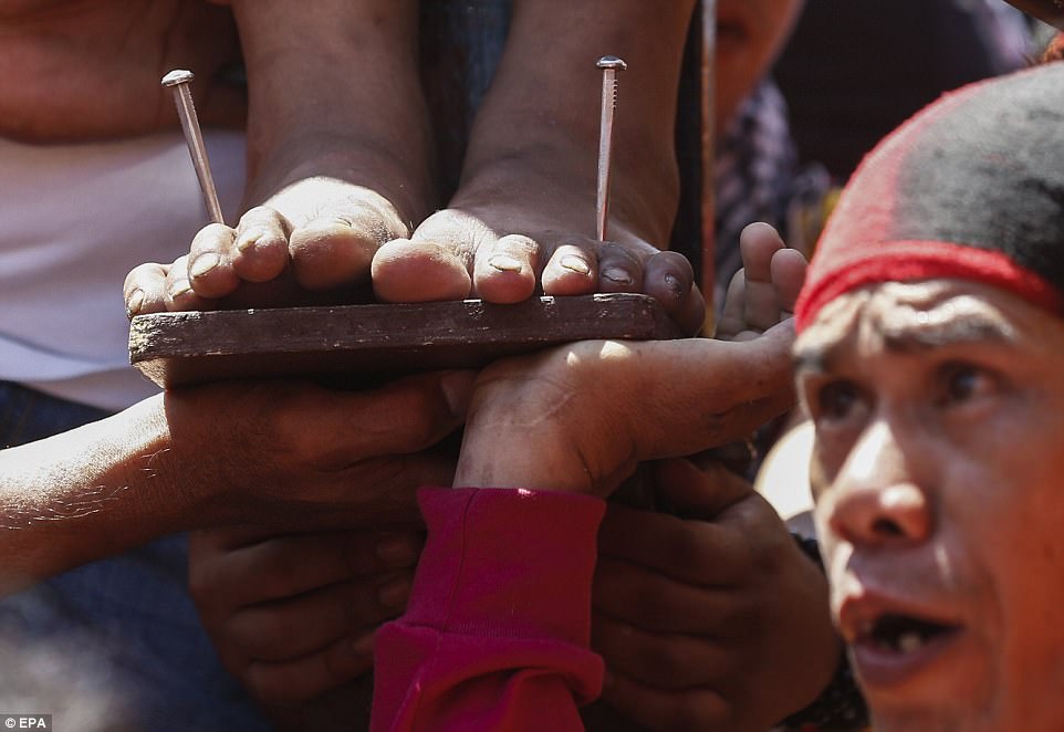 ▼​當地的天主教領袖曾公開反對這樣的做法,衛生部官員也不認同這種自殘的紀念方式,但虔誠的教徒們還是堅持這樣做。