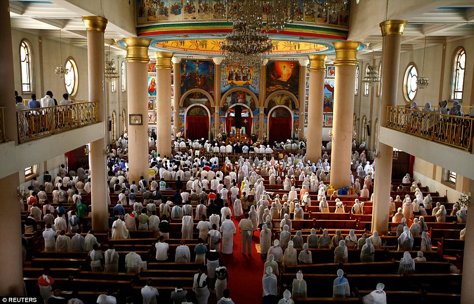 ▼​東正教徒聚集在教堂中慶祝。