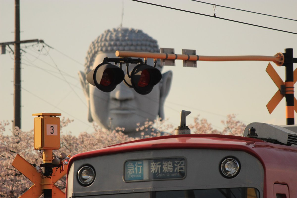 2017年04月17日櫻花盛開的時節,不出去看一下好像春天就白過了。最近日本愛知縣布袋大佛附近的櫻花已經開滿,下面這名網友就跑去欣賞,沒想到抬頭看不遠處的大佛時,他卻發現了格外有趣的畫面……