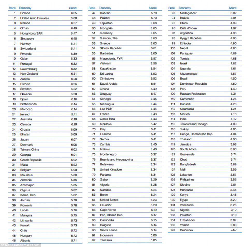 ▼還在猜想是英國、美國嗎?這次的第一名是芬蘭!歐洲一度是世界上公認的旅遊勝地,每年接待的國際遊客超過12億人次,這次芬蘭奪得第一名更是讓無數遊客蠢蠢欲動。排在第二位和第三位的是阿聯酋和冰島,英國排在了第78位,美國更是遠遠的被甩在84位!看來決定一個國家安全性的重要因素是恐怖主義和暴力事件。第四位是阿曼,緊隨其後的是香港、新加坡、挪威、瑞士。
