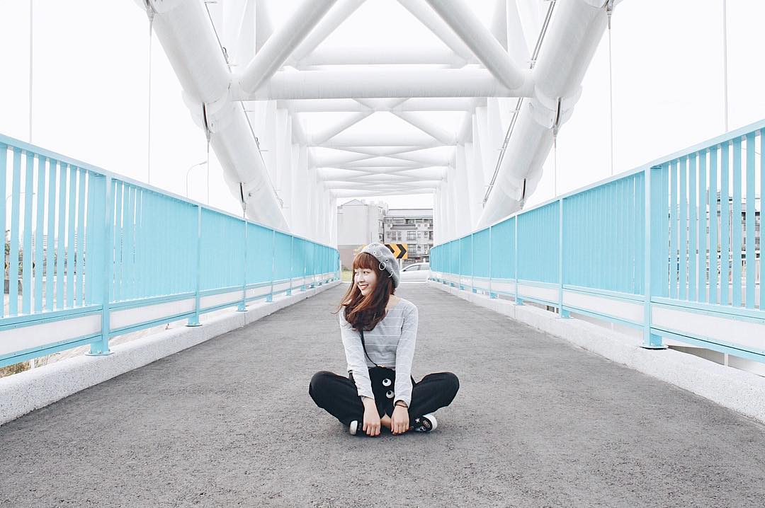 如同希臘地中海般的絕美配色,水藍+白的清爽組合正是讓人一眼望去便心曠神怡的台中海天橋,尤其陽光灑落,在橋上完全抵不住熱情陽光。