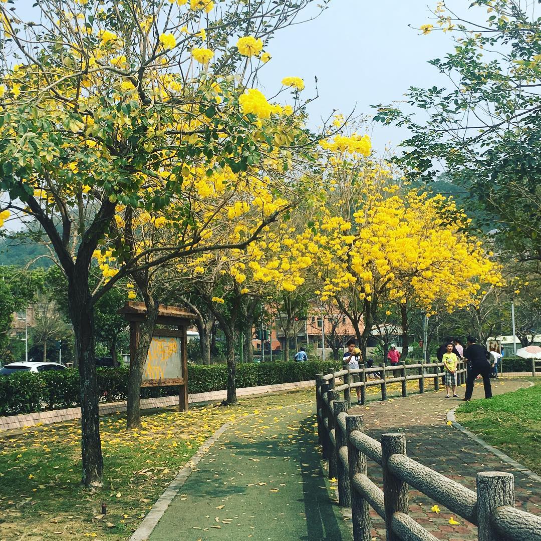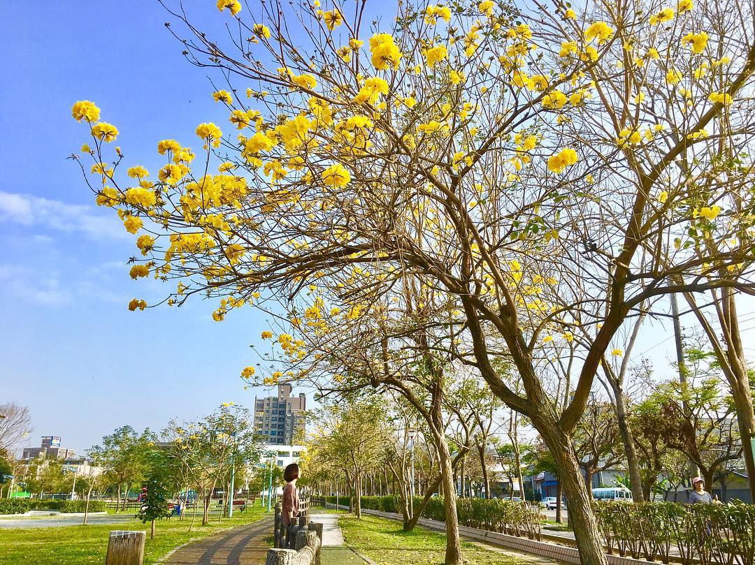 因為兩旁種植的金黃風鈴木閃閃發光而聞名,最近甚至有「全台中最美黃金公園」美稱。印襯著一抹抹陽光灑落更顯耀眼動人。