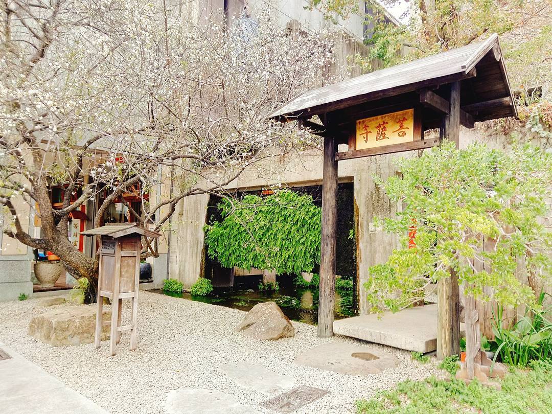 清水模是近年來最流行的建築元素,大里菩薩寺有濃濃的日式禪風氛圍,刷白灰淡的建築外觀與優雅的綠色植栽,彷彿來到了日本神社。