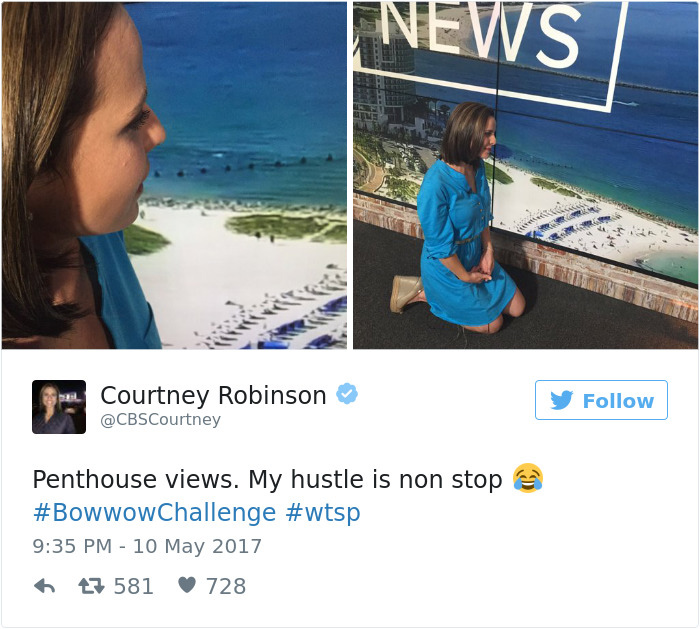 ▼在這場「鮑沃挑戰」中,印第安納州州長麥克·彭斯(Mike Pence)是當之無愧的冠軍。請問你到底在向誰招手?觀眾席上根本沒有人……