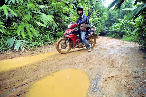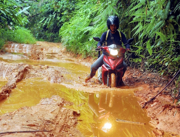 ▼根據《新海峽時報》的報導,阿默賽丁是一位在馬來西亞彭亨(Pahang)任教的老師,他育有2位小孩,為了到偏遠的學校教書,他必須在崎嶇的泥路騎著機車,穿越重重森林,才能抵達SK Lenjang學校,替456位原住民學生上課。