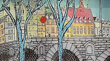 ▼從那天開始,夫妻兩人專心在玻璃上畫畫,他們用簡單的線條、豐富的色彩勾勒風景,因為每一幅畫都包含好幾層,還有一種3D的感覺。
