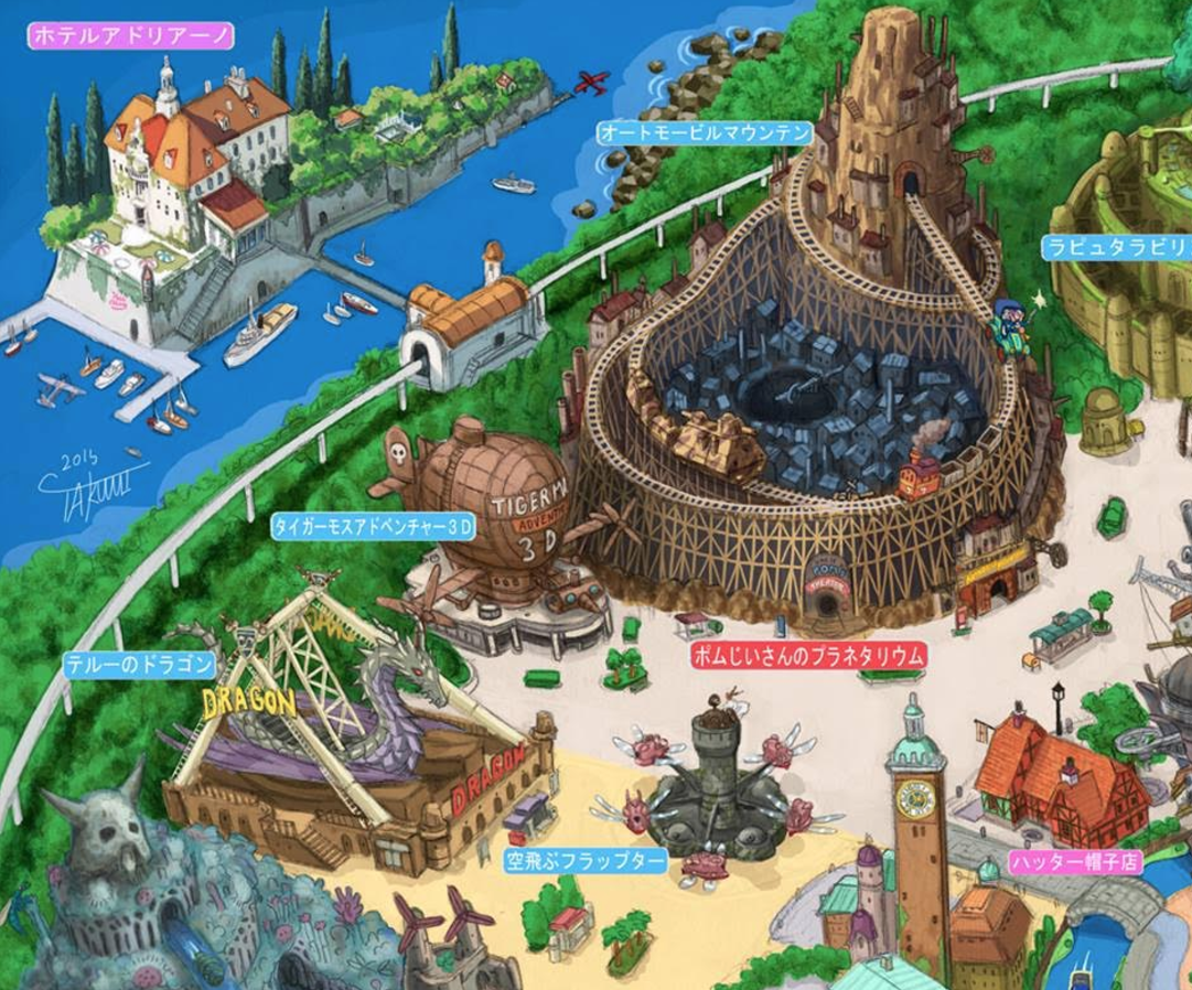 ▼這個消息一發布就引來了眾多網友的關注,有位特別有才的設計師TAKUMI甚至創作出了一幅吉卜力樂園的概念圖,細節豐富令人讚嘆。