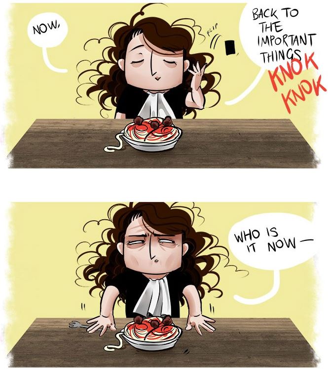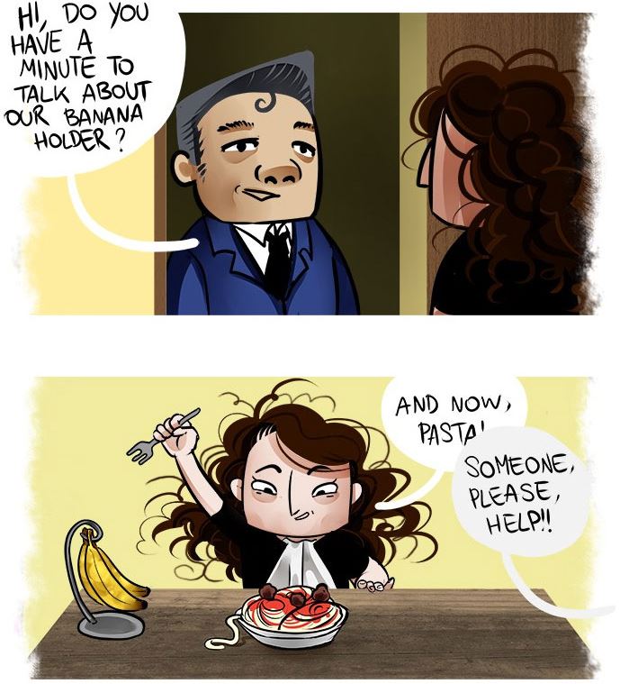 (回到餐桌)「做了這麼大的善事後,我確定該犒賞自己一些義大利麵…」