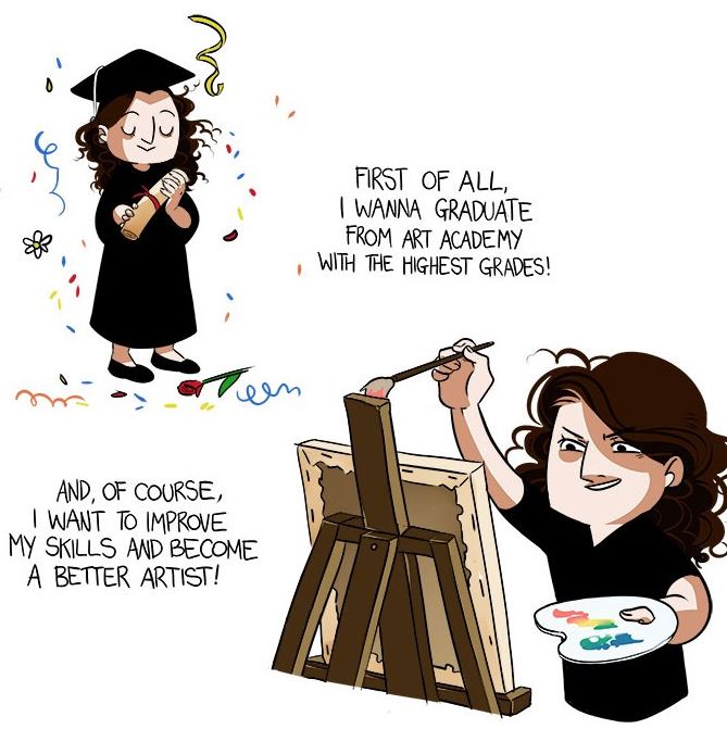 ▼4. 「我想趁年輕時多做一點事,首先,我想以最高的分數從藝術學院畢業。」、「當然了,我還會持續精進我的畫技,讓自己成為一位更強大的藝術家!」