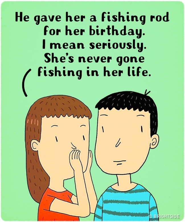 「他送給她一根魚竿當生日禮物。說真的,她這輩子都不會去釣魚好不好。」