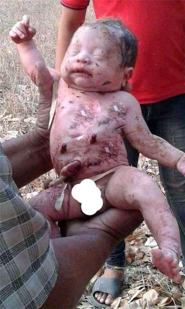 ▼今年2月在泰國北部的昆敬府,有一名剛出生沒多久的男嬰竟然被人用刀連捅14刀,還將他用頭朝下的方式將他活埋在一個20公分深的坑中。
