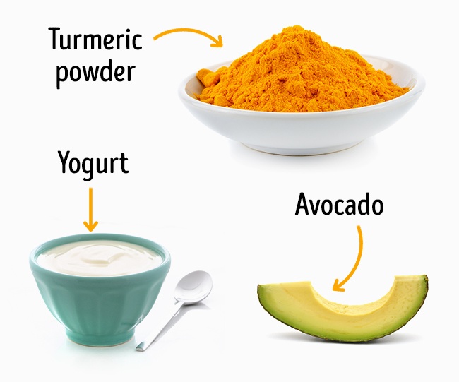 ▼鎮靜緩和麵膜。酪梨去皮搗碎成泥加入1/4勺薑黃粉和一勺酸奶,混合後塗抹在臉上保持5分鐘。這款面膜對於燒傷、曬傷都很有幫助,鎮靜消炎還可以幫助皮膚癒合。