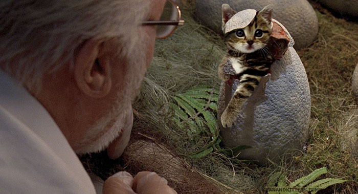 ▼最近網友們腦洞大開,想用另一種方式打開《侏羅紀公園》。他們把可怕的恐龍換成了萌萌的貓咪,結果是什麼樣的?