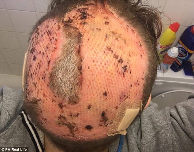 ▼最後醫生確定,Kirsty屬於化學燒傷,必須接受植皮手術。他們先把她的頭髮剃掉,然後從她的右腰取了一塊皮膚做移植。不過腰部的皮膚沒有毛囊,Kirsty的頭頂再也長不出頭髮了。