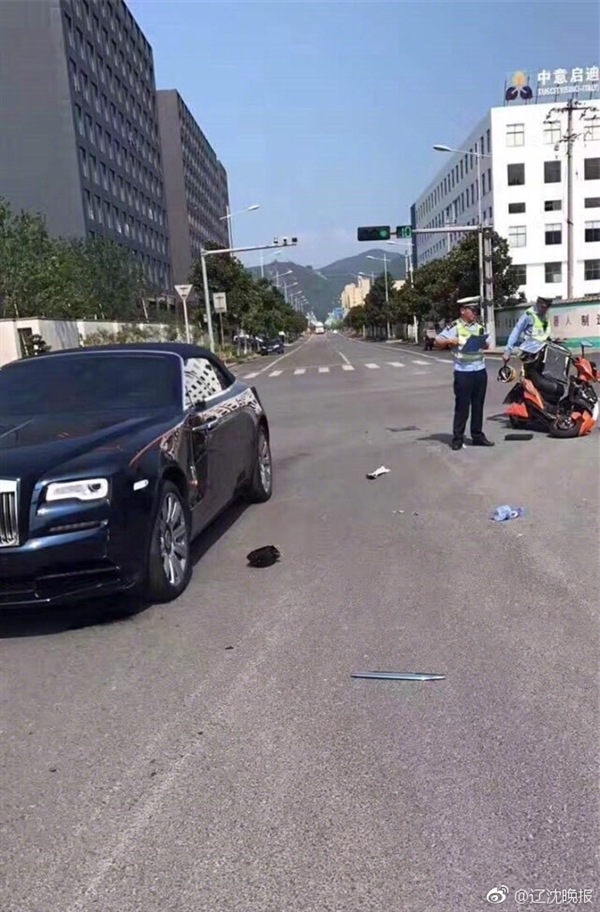 2017年08月08日前幾天,浙江寧波余姚市城東新區的一個十字路口發生了一場車禍,一名騎機車的外送員闖紅燈,不小心與一台勞斯萊斯發生擦撞,汽車的車門整個凹陷了下去。外送員摔倒在地,但他首先擔心的不是自己的傷勢,而是撞壞了跑車,該拿什麼賠?
