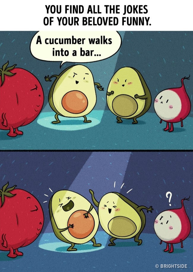▼8.另一半說的任何一個笑話你都覺得十分好笑,你變成了他的「捧場王」!