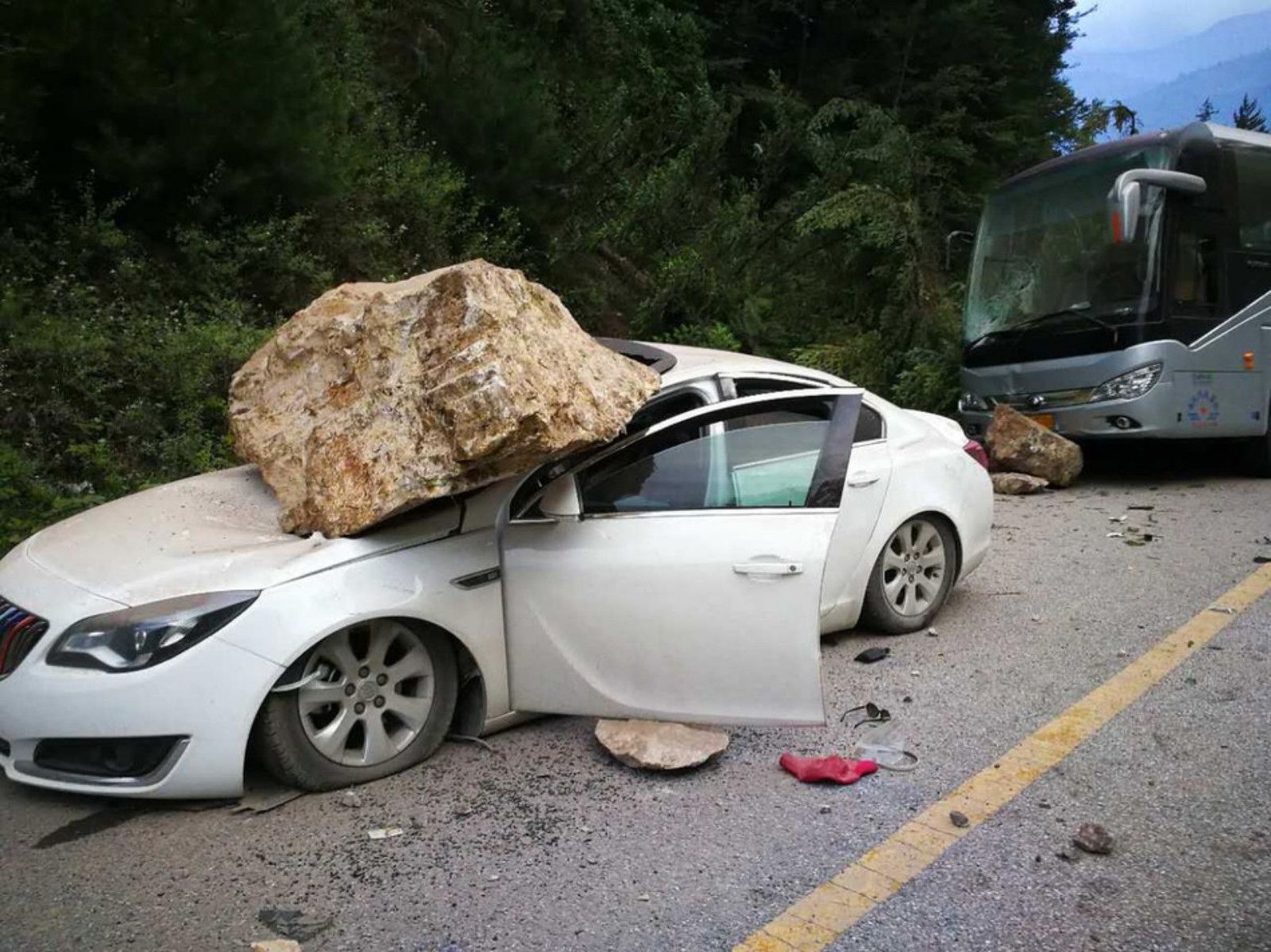 2017年08月10日中國四川的九寨溝在8日發生7級地震,造成嚴重山崩與落石,一對從武漢帶女兒出遊的夫妻慘被落石砸中車子,母親當場死亡,父親則強撐著打破車窗,把女兒推了出去,犧牲自己換來女兒性命。