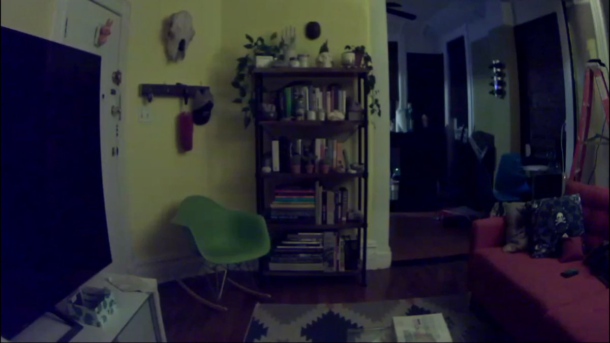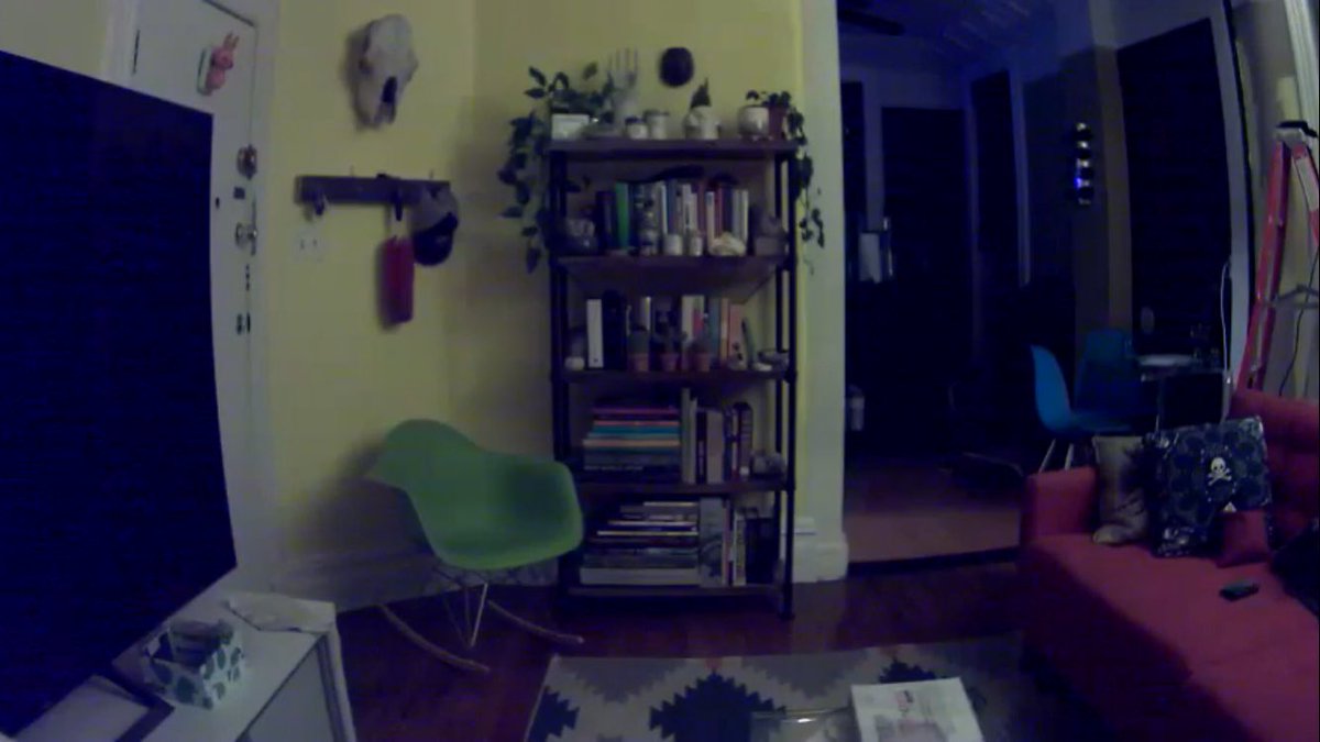 ▼這台監視器能夠跟手機app連接,只要偵測到物體移動或是聲音就會自動傳送通知到手機上。為了測試監視器運行是否正常,他還專程離家一天觀察監視器的運作。到了晚上11點左右他的手機突然接到通知,監視器偵測到了移動的物體和一些聲音。