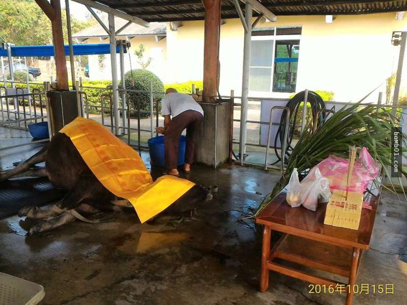 ▼他不停撫摸老牛的頭和身體,流著淚說:「再來要找個好人家投胎,要找個有錢人,過好日子……」