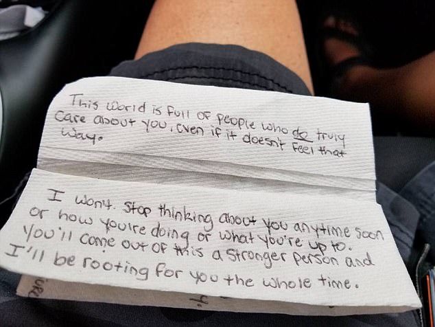 ▼那位空少聽了連連安慰她,周遭的乘客也都寄予同情。崔西亞在接過那位空少倒的水後,情緒終於稍微冷靜,準備下機時,那位空少突然遞給了她一張寫滿字的衛生紙。崔西亞打開那張衛生紙後,眼淚忍不住奪眶而出!