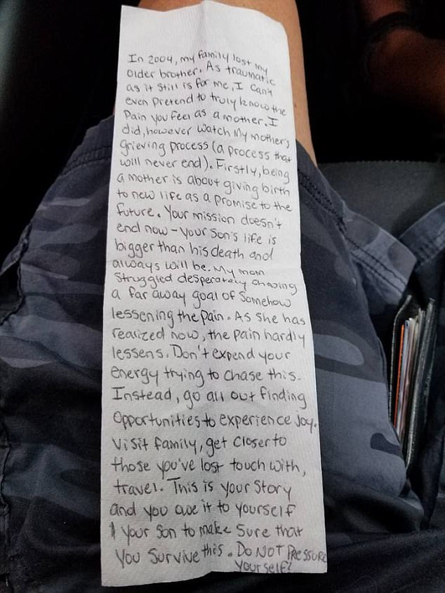 ▼上面寫著:「2004年,我們家失去了我的哥哥。現在想起來我還是會心痛,或許我無法體會做一位母親的痛苦,但我的確見證了我媽媽經歷那整段過程,那樣的傷痛永遠不會消逝。」