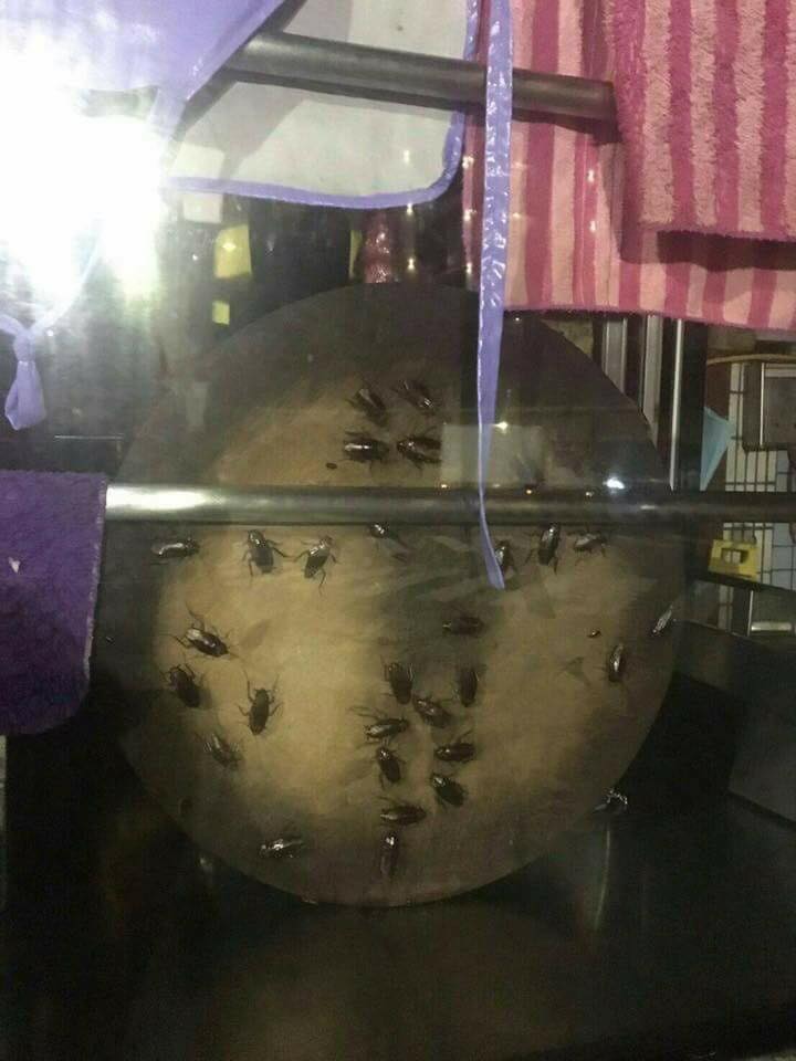 ▼當時有網友在林口這間知名燒臘店發現,歇業後的砧板上爬滿小強,而且足足有30隻之多,引來網友討論說:「好熱鬧喔!」、「白天烤鴨碎,晚上蟑螂睡」、「看了都快吐了。」對餐廳衛生產生疑慮。