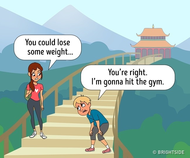 我們每個人都想說服自己,外表並不會影響內在的良善,但如果你突然暴肥,連走路都氣喘吁吁,伴侶這時的建議可能是真的在關心你的健康,而不是試圖在冒犯你了。