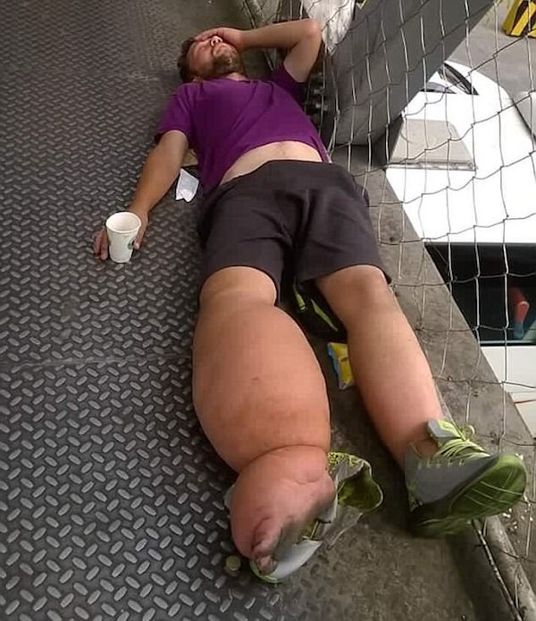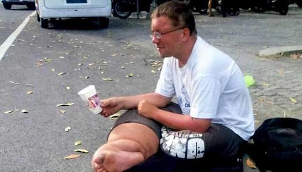 ▼而在這類「乞討背包客」中,最惡名昭彰的就是這位德國人班傑明霍斯特(Benjamin Holst)了。從照片中,你可以看到他的右腿有嚴重腫脹,這是因為他患有「局部性巨人症」,一般人能做出的動作都會給他造成痛苦,但這種病症並非無法治癒的,相反的,班傑明反而利用這條腿,完成了他玩遍亞洲的理想。