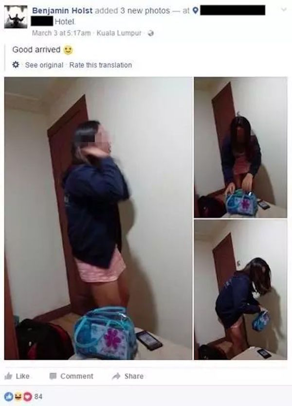 ▼班傑明接著來到了馬來西亞,不改本性的他還在臉書上說:「檳城的姑娘好便宜。」接下來他又陸續上傳了幾位馬來西亞女孩的照片,向網友報告他的「獵豔近況」。