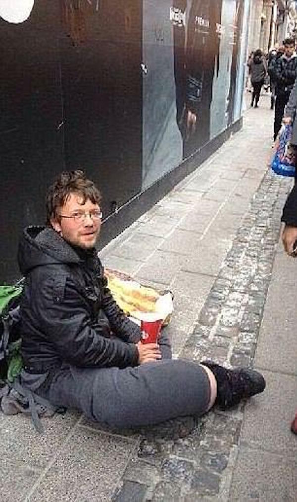▼但在泰國旅遊不久後,他的旅費就花得差不多了。於是他興起一個念頭,那就是坐在路邊乞討!班傑明不但展現他的腫脹腿部,還立了一個牌子,說自己在旅行中護照和現金都丟了,希望能獲得大眾資助。