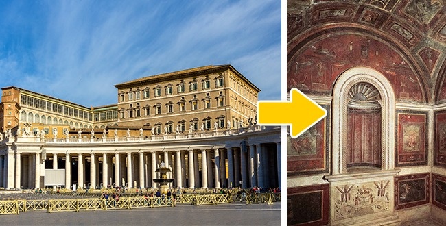 ▼梵蒂岡:紅衣主教碧比耶納住所裡的浴室。這間浴室的牆壁上畫滿了拉斐爾的情色畫,主教躺在浴缸裡就能欣賞。
