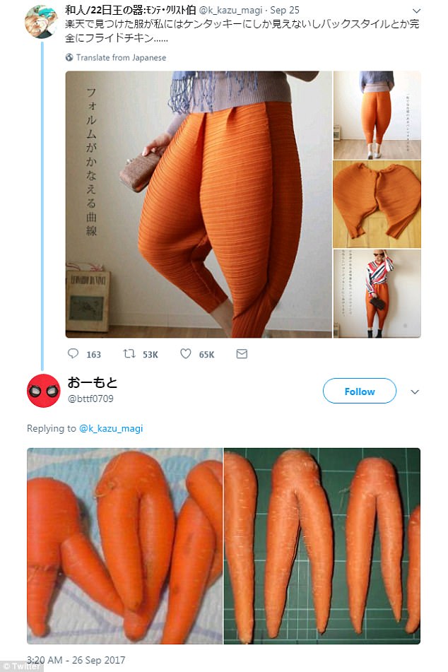 2017年10月10日最近這段時間,「四大時裝周」新聞不斷,潮人們又開始更新自己的衣櫥了。不過時尚圈與普通人的距離還是遠了些,大家更關注平民一點的潮流。最近,日本推特網友「k_kazu_magi」逛街時就看到了一件特別的褲子,它長這樣……
