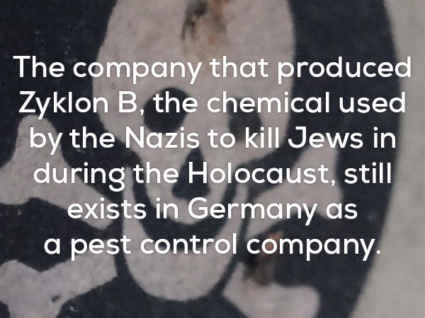 ▼2. 猶太人大屠殺期間,那間負責生產毒氣「齊克隆B」,讓納粹處決猶太人的公司還在德國營運,現在它是一間滅鼠公司。