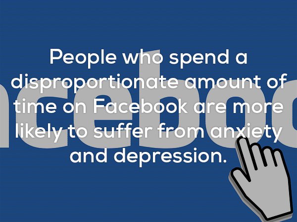 ▼19. 在臉書上花過多時間的人,會比其他人更容易罹患焦慮症與憂鬱症。