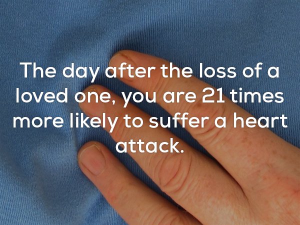 ▼12. 在失去愛人的隔日,你罹患心臟病的機率會比平常高21倍。