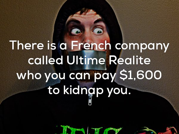 ▼20. 法國有一間叫做「極度現實」的公司,讓你可以花1600美元(約4.8萬台幣)體驗被綁架的感覺。