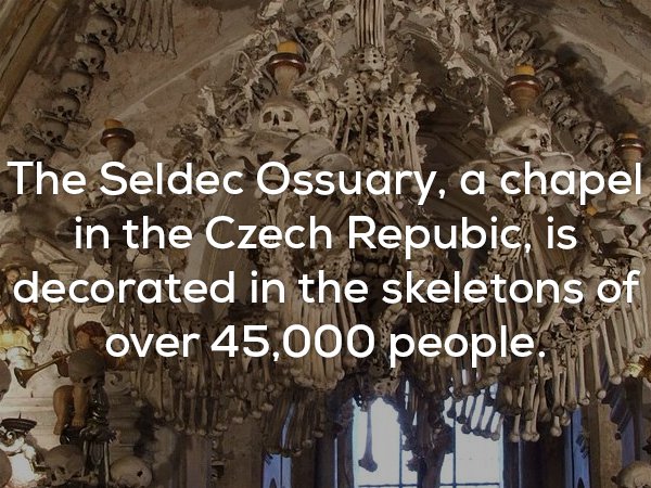▼13. 捷克的人骨教堂裡裝飾著45000具人骨。