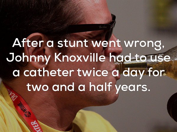 ▼17. 在一場特技表演意外後,演員強尼‧諾克斯威爾(Johnny Knoxville)2年半來每天都要用導尿管2次。