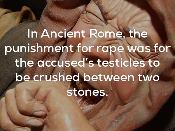▼22. 在古羅馬,懲罰強暴犯的方式是用兩顆石頭夾碎他的睪丸。
