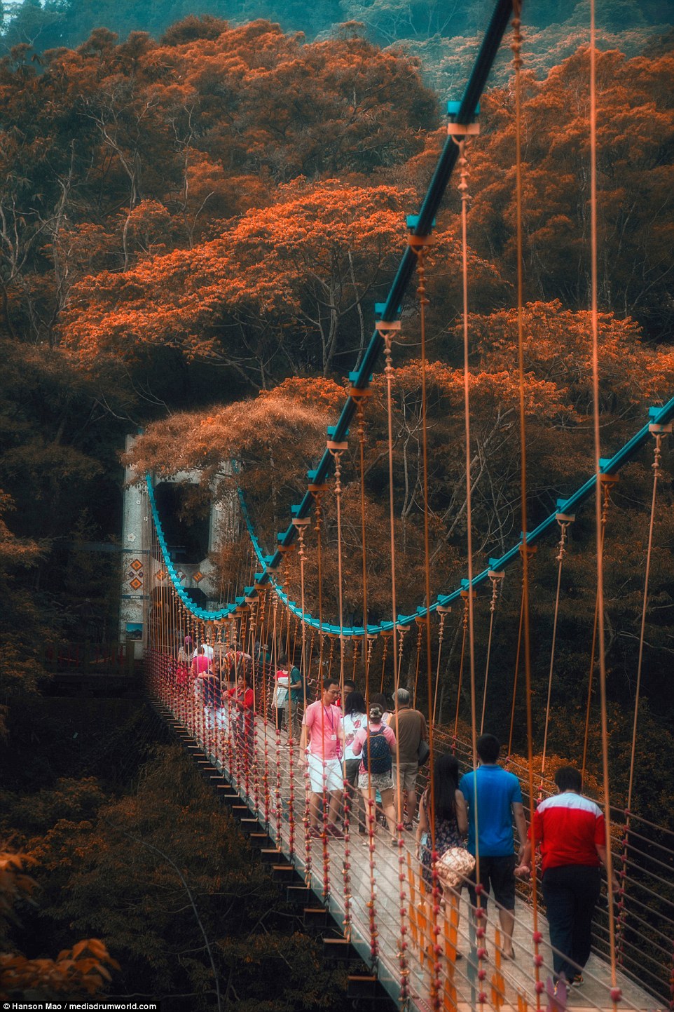 ▼整座橋耗資600萬元以及一年的時間打造而成,為了安全起見每次只能有15人通過,需要採取網路申請預約入園參觀的方式,以達到控制遊客數量和維護園區品質的目的。