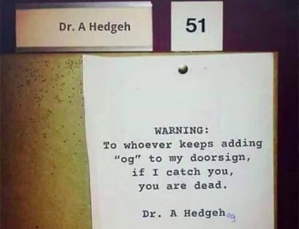 ▼「警告:那些在我名字後面加『og』的人,被我抓到你就死定了!」(Hedgehog是刺蝟的意思)