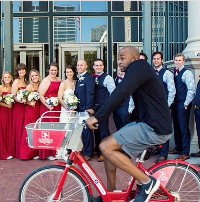 ▼被流浪漢亂入的結婚照。