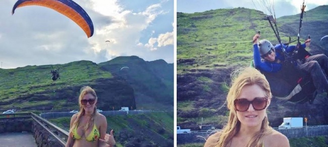▼我的女性朋友想要在夕陽前拍一張我背著她的照片,結果一旁的重機大叔說他也要!