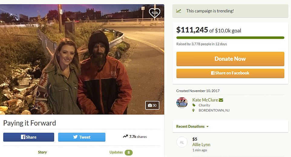 ▼凱特和馬克為了希望能幫助他的生活回到正軌,於是在眾籌網站(GoFundMe)為強尼發起了眾籌,原本的目標只有1萬美元(約新台幣30萬元),沒想到才十幾天就募得了11萬美元(約新台幣330萬元),目前還在不斷增加中。