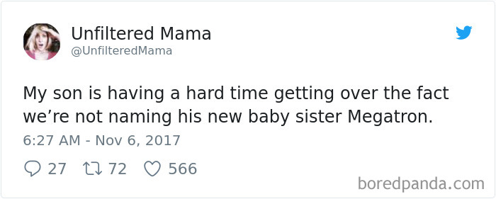 ▼4.「我們沒給剛出生的小女兒取名為密卡登,我兒子氣了好久。」