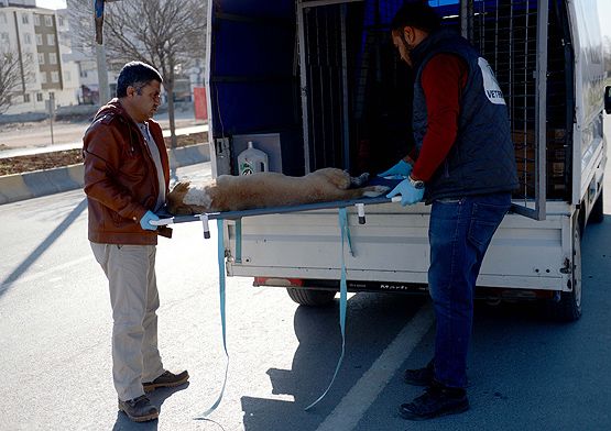 ▼侯賽因用毯子包覆了發抖的狗狗,然後陪伴在牠身邊,等待救援機構幫助。在等待的期間,他還很溫柔地安慰這隻狗,希望牠不要擔心害怕。